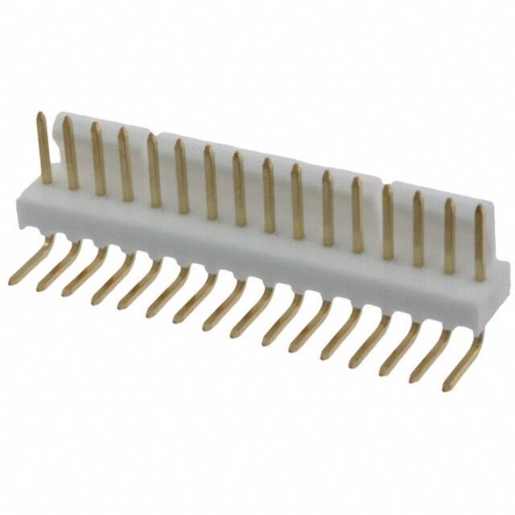 KK 7478 Series 1-Row Header Solder Brass Bulk Through Hole, Right Angle Gold Polyamide (PA), Nylon 16-Position Board to Board or Cable 0.250 6.35mm Height