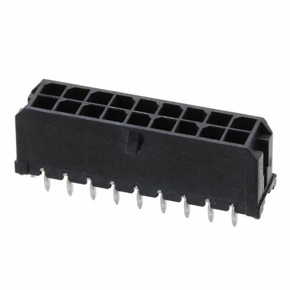 Micro-Fit 3.0 43045 Series 2-Row Header Kinked Pin, Solder Brass Tray Through Hole Gold Liquid Crystal Polymer (LCP), Glass Filled 18-Position Board to Cable/Wire 0.390 9.91mm Height
