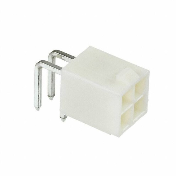 Minitek® Pwr 4.2 Series 2-Row Header Solder Brass Tray Through Hole, Right Angle Tin Polyamide (PA66), Nylon 6/6 4-Position Board to Cable/Wire 0.386 9.80mm Height