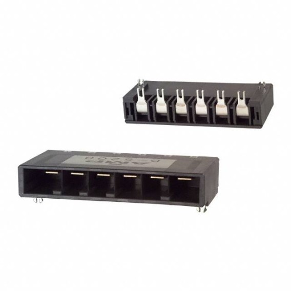Dynamic D-5200 Series 1-Row Header Solder Copper Alloy Tube Through Hole, Right Angle Gold Thermoplastic, Polyester, Glass Filled 6-Position Board to Cable/Wire 0.547 13.90mm Height