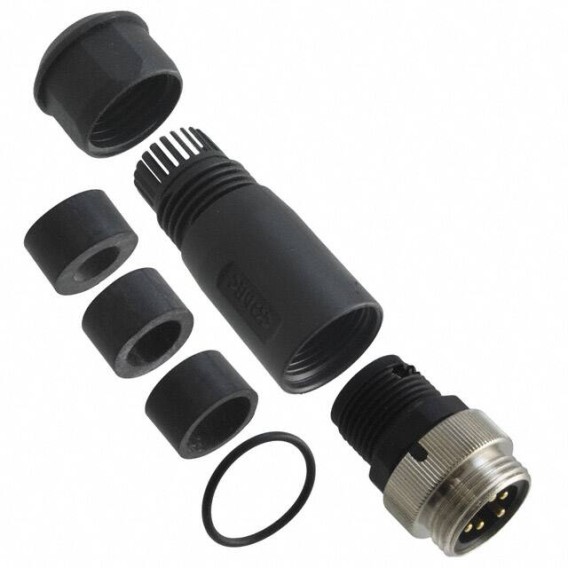 Receptacle, Male Pins Polyamide (PA6), Nylon 6, Glass Filled Free Hanging (In-Line) 5 (4 + PE) Positions Screw Gold Bulk Keyed Threaded