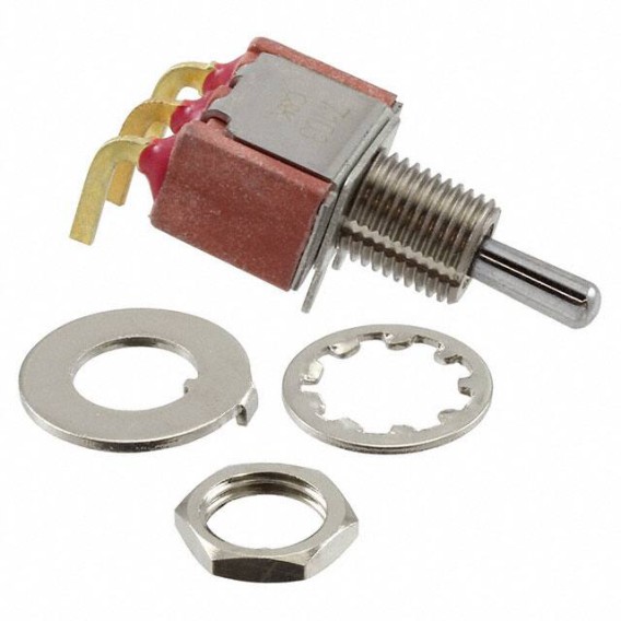Switch Toggle ON OFF ON SPDT Round Lever PC Pins 20VAC 20VDC 0.4VA PC Mount with Bracket and Threads