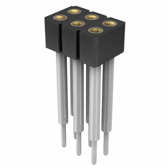 2 Rows Socket Solder Beryllium Copper Through Hole Bulk Gold Liquid Crystal Polymer (LCP), Glass Filled 6 Positions Female Socket