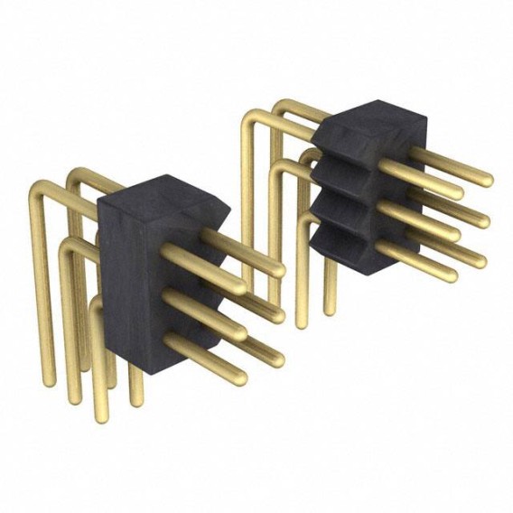 854 Series 3-Row Header Solder Brass Bulk Through Hole, Right Angle Gold Polycyclohexylenedimethylene Terephthalate (PCT), Polyester, Glass Filled 9-Position Board to Board 0.174 4.42mm Height
