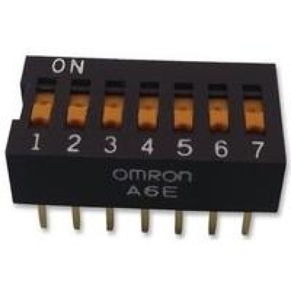 Switch DIP ON OFF 7PST 7 Flush Slide 0.025A 24VDC PC Pins 1000Cycle 2.54mm Thru-Hole Stick