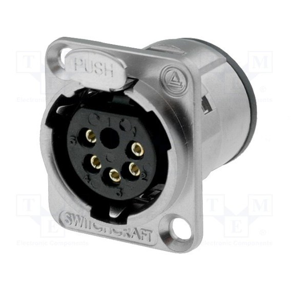Plug, Female Sockets Zinc Die Cast Panel Mount 5 Positions Solder Cup Silver Nickel Bulk Keyed Latch Lock