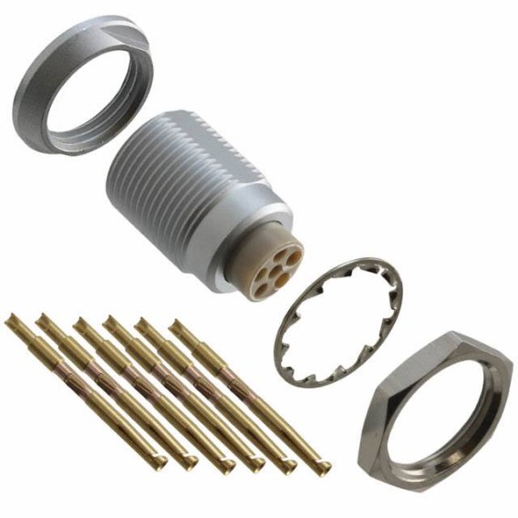 Receptacle, Female Sockets Brass Panel Mount 6 Positions Solder Cup Gold Chrome over Nickel Bulk G Push-Pull