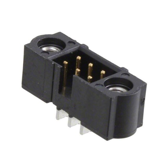Datamate J-Tek Series 2-Row Header Solder Brass Tube Surface Mount, Right Angle Gold Polyphenylene Sulfide (PPS), Glass Filled 6-Position Board to Board or Cable 0.218 5.55mm Height