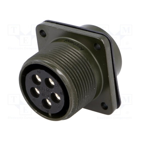 Receptacle, Female Sockets Aluminum Alloy Panel Mount 5 Positions Solder Cup Silver Olive Drab Chromate over Cadmium Bulk N (Normal) Threaded