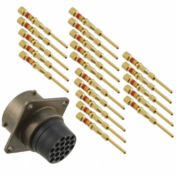 Receptacle, Male Pins Aluminum Panel Mount 19 Positions Crimp Gold Olive Drab Chromate over Cadmium Bulk N (Normal) Bayonet Lock