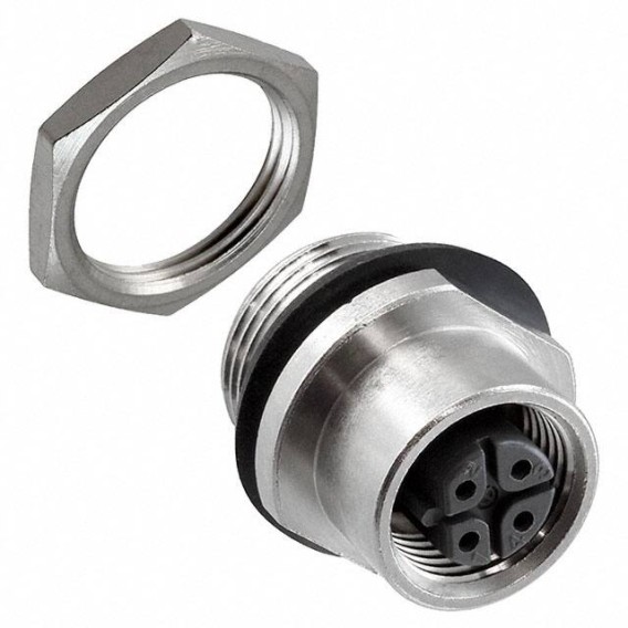 Receptacle, Female Sockets Brass Panel Mount 4 Positions Solder Cup Gold Nickel Bulk Keyed Threaded