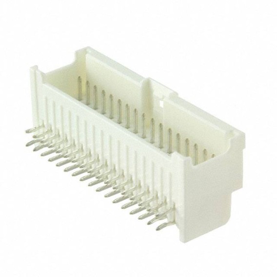 MicroClasp 55959 Series 2-Row Header Kinked Pin, Solder Brass Tray Through Hole, Right Angle Tin Polybutylene Terephthalate (PBT), Glass Filled 34-Position Board to Cable/Wire 0.461 11.70mm Height