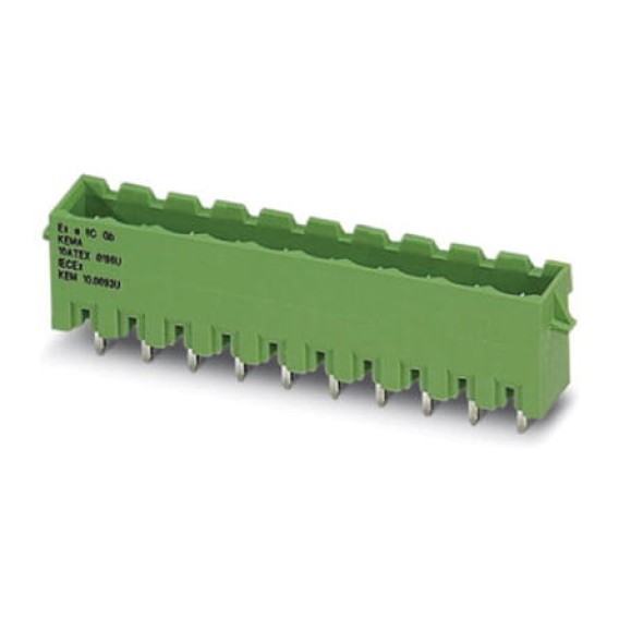 Bulk 0.200 5.08mm Green 1 Levels Through Hole Header, Male Pins, Shrouded (4 Side) COMBICON MSTBVA Polyamide (PA), Nylon Tin
