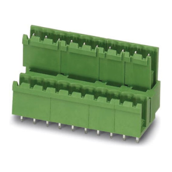Bulk 0.200 5.08mm Green 2 Levels Through Hole Header, Male Pins, Shrouded (2 Side) COMBICON MDSTBV Polybutylene Terephthalate (PBT)