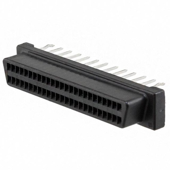 AMPLIMITE .050 I Series D-Type, Board to Board Plug, Female Sockets 50-Position Signal Kinked Pin 0.050 Pitch x 0.100 Row to Row Through Hole Copper Alloy Gold