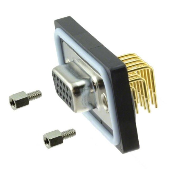 600W Series D-Sub, High Density Receptacle, Female Sockets 15-Position Receptacle Signal Solder 1 DE E High Density Panel Mount, Through Hole, Right Angle Copper Alloy Gold Steel, Nickel Plated