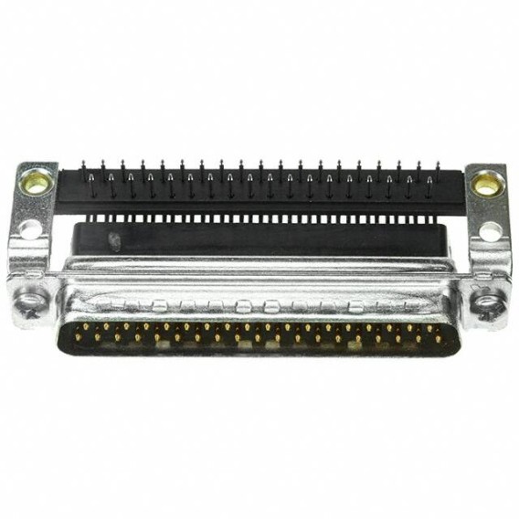 AMPLIMITE HDP-20 Series D-Sub Plug, Male Pins 37-Position Male Signal Solder 4 DC C Through Hole, Right Angle Brass Gold Steel, Tin Plated