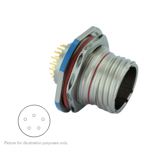Receptacle, Male Pins Aluminum Panel Mount, Through Hole 5 Positions Solder Gold Nickel Bulk N (Normal) Threaded