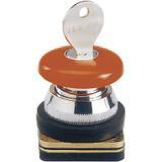 Pushbutton Operator,Non-Illum.,Red Mush.,Press to Lock/Key to Release,30mm