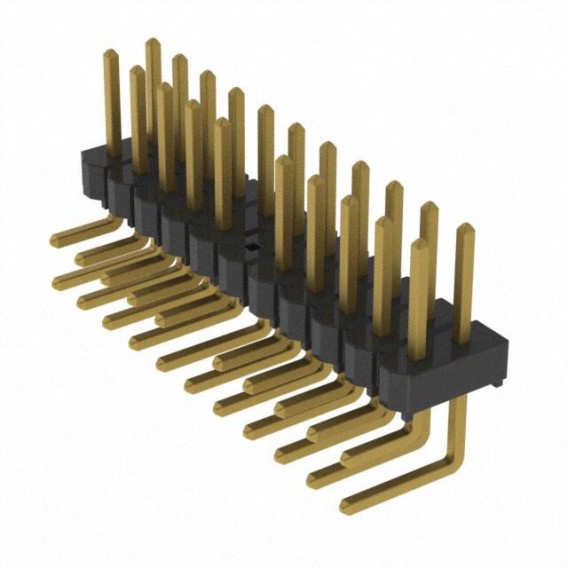 HTSW Series 2-Row Header Solder Phosphor Bronze Bulk Through Hole, Right Angle Gold Liquid Crystal Polymer (LCP) 22-Position Board to Board or Cable 0.240 6.10mm Height