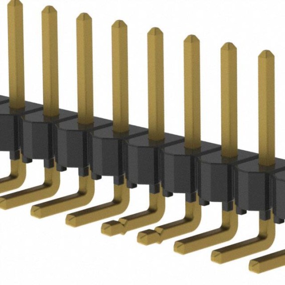 HTSW Series 1-Row Header Kinked Pin, Solder Phosphor Bronze Bulk Through Hole, Right Angle Gold Liquid Crystal Polymer (LCP) 50-Position Board to Board or Cable 0.122 3.10mm Height