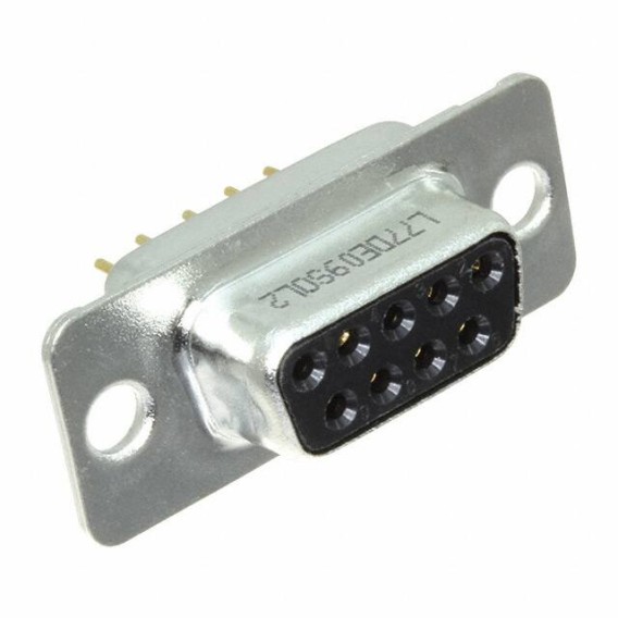 D Series D-Sub Receptacle, Female Sockets 9-Position Signal Solder 1 DE E Through Hole Brass Gold Steel, Tin Plated