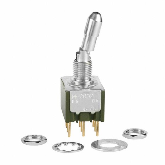 Switch Toggle ON None ON 3PDT Locking Lever PC Pins 0.1A 28VAC 28VDC 0.4VA PC Mount with Threads