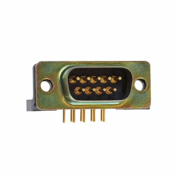 24308-Style, D*MM Series D-Sub Plug, Male Pins 9-Position Signal Solder 1 DE E Panel Mount, Through Hole, Right Angle Gold Steel, Yellow Chromate Plated Zinc