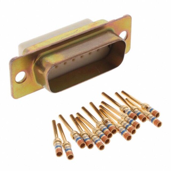 24308-Style, D*MAM Series D-Sub Plug, Male Pins 15-Position Male Signal Crimp 2 DA A Panel Mount Gold Steel, Yellow Chromate Plated Cadmium