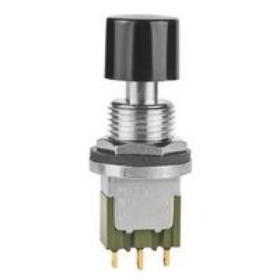 Pushbutton Switches ON(ON) 12MM SPLSHPRF BSHG SLDR.52 BLK CAP