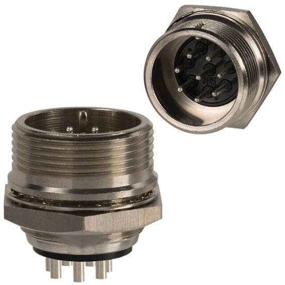 Receptacle, Male Pins Brass Panel Mount 8 Positions Solder Cup Silver Nickel Bulk Keyed Threaded